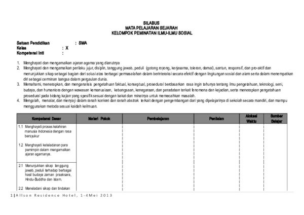 Pengantar kurikulum matematikah peminatan silabus matematika sma kelas xi silabus matematika sma kelas xii. Berikut ini admin akan membagikan silabus sejarah indonesia sma kelas x secara lengkap. Kd sejarah dok mapel sejarah silabus sejarah indonesia. Buddha di indonesia buku paket sejarah indonesia kelas x. Berdasarkan kurikulum 2013 edisi revisi 2016 komponen silabus mencakup kompetensi dasar, materi pembelajaran, dan kegiatan pembelajaran.